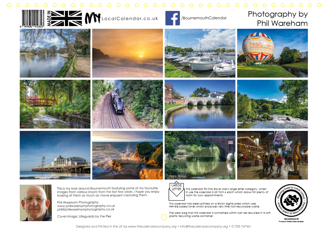 A double A4 Calendar featuring 13 different images (1 on the cover) from in and around Bournemouth.