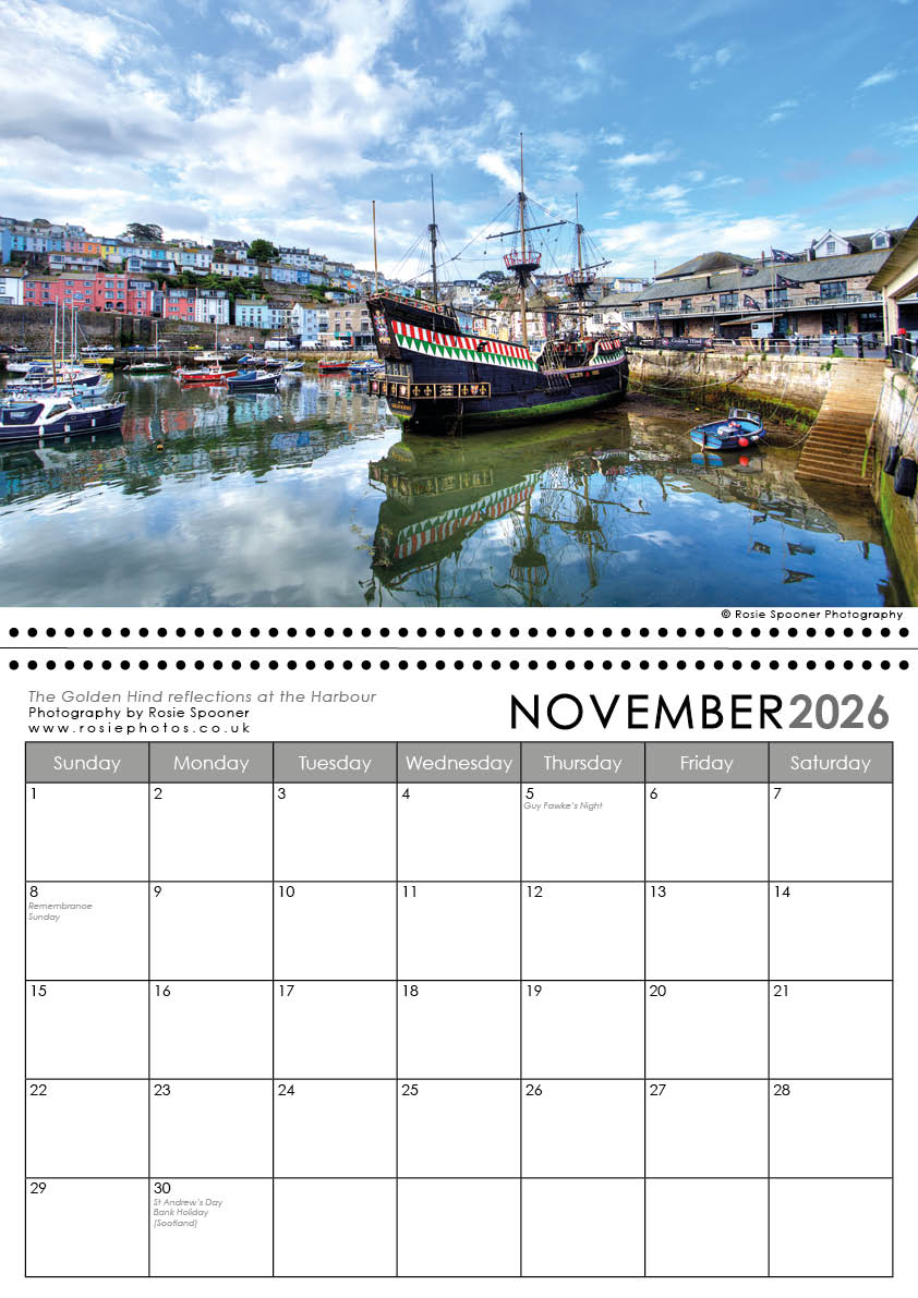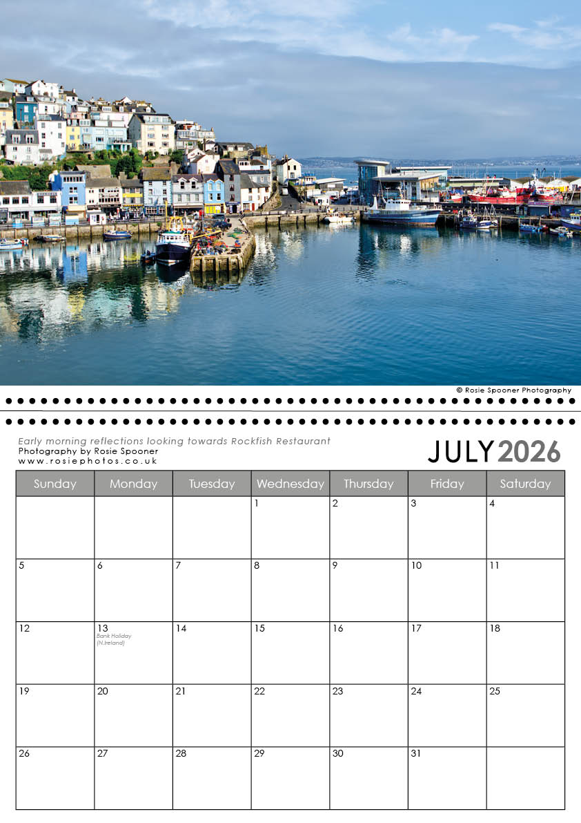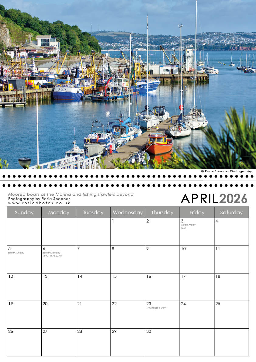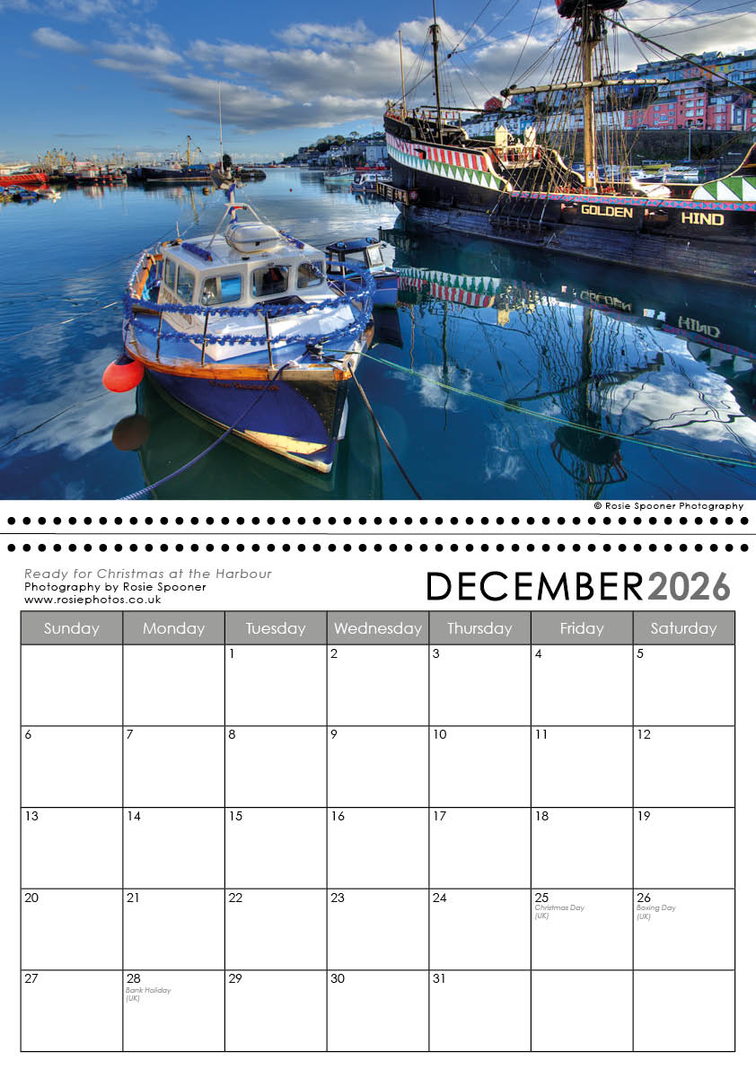 A4 calendar with twelve beautiful photos of Brixham in South Devon.