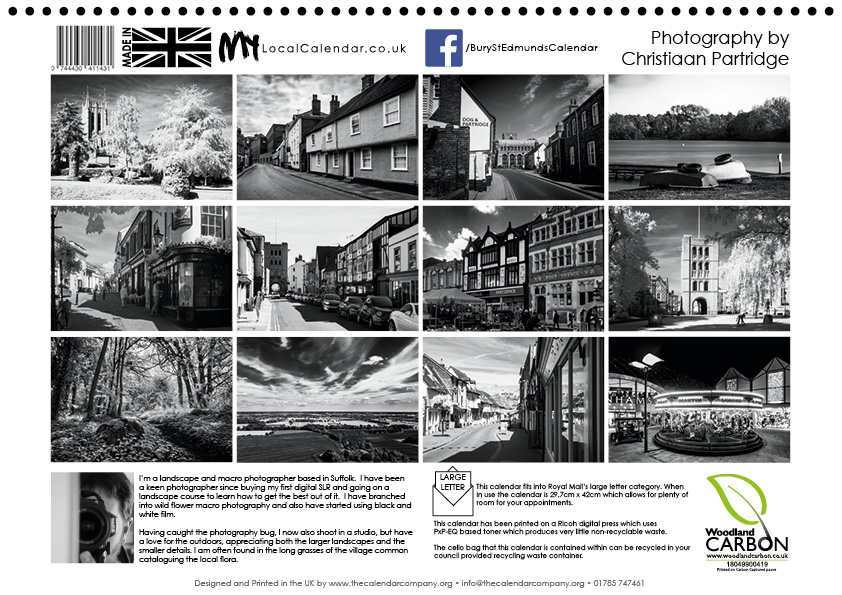 Publications include Bury St. Edmunds Calendars since 2017, and the internationally available calendar Suffolk Flora: An Individual Perspective.