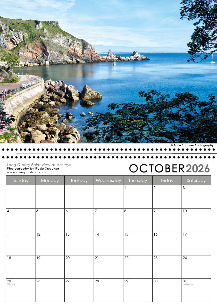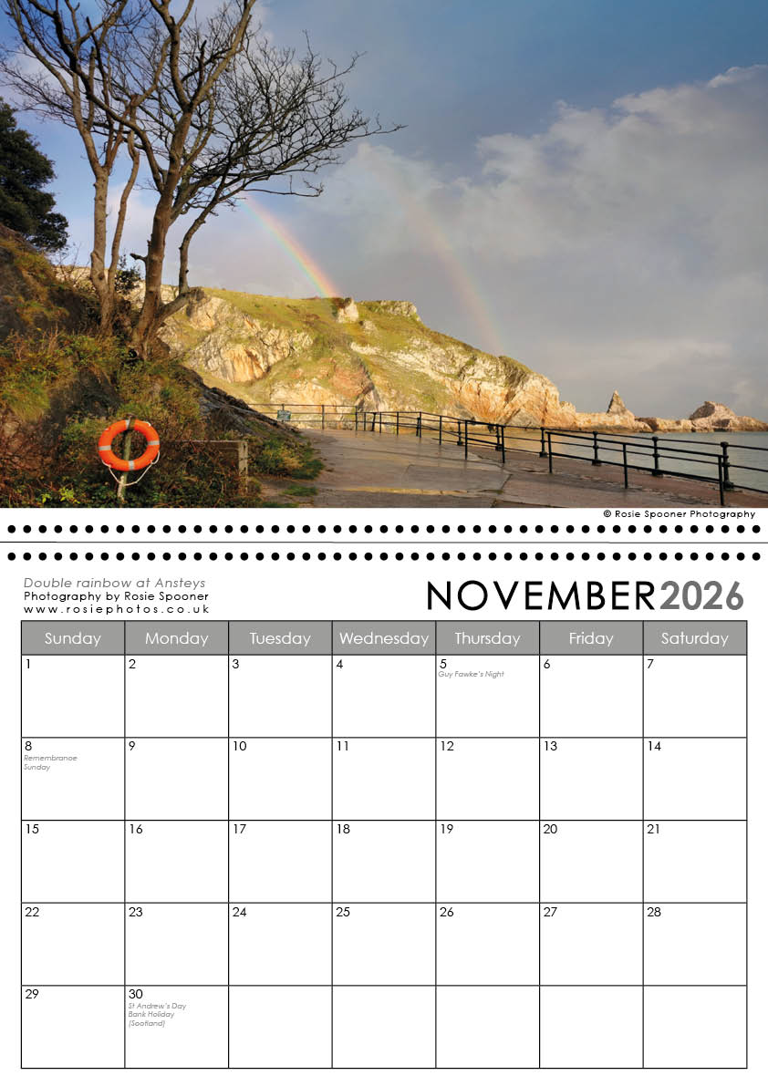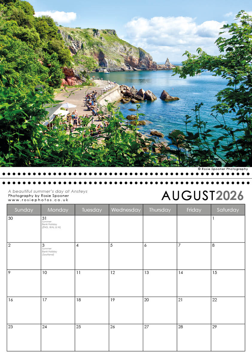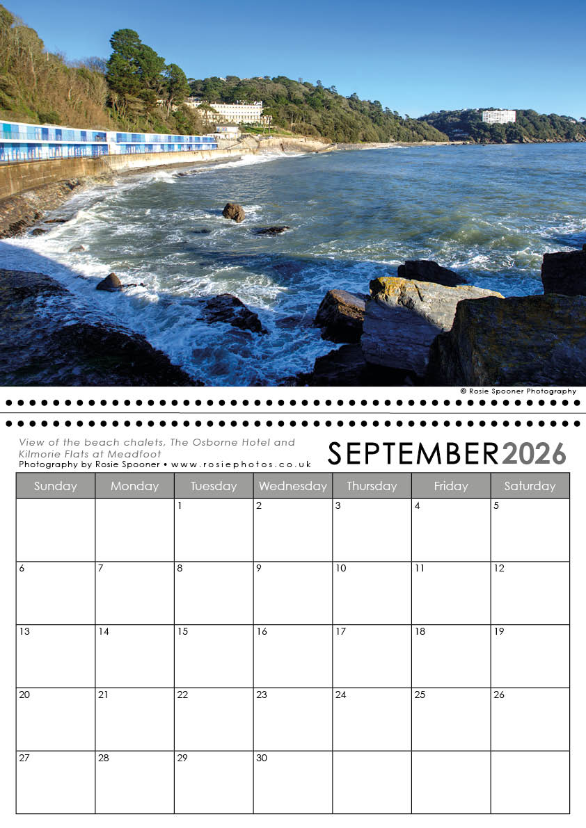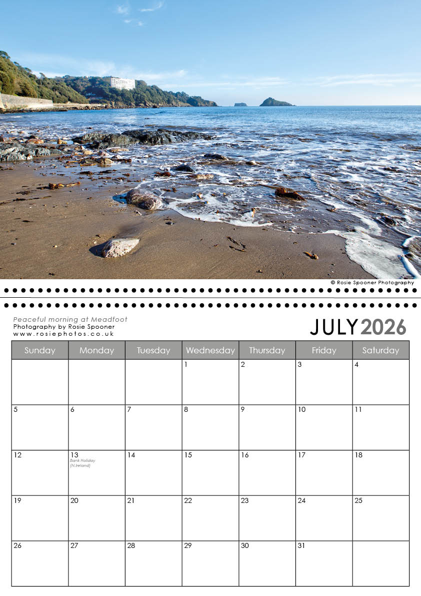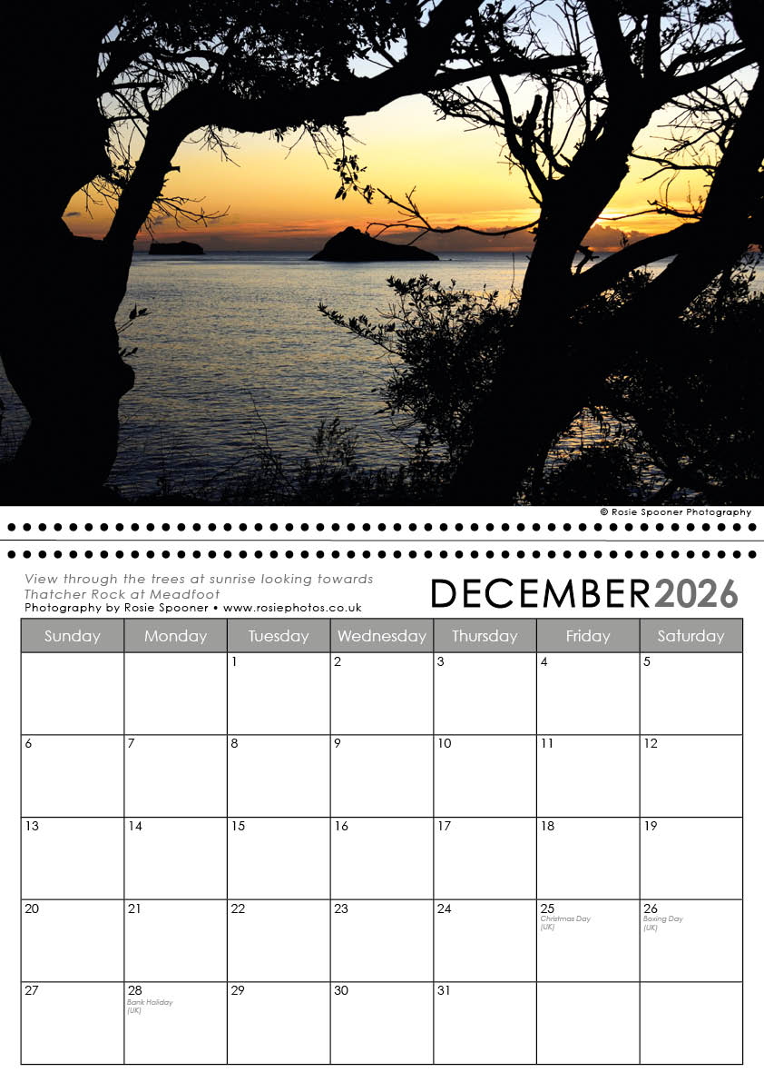 Meadfoot and Ansteys Cove Calendar 2026. This is the version with Anstey’s Cove on the front. There is also a version with Meadfoot Beach on the front. Twelve original photos by Rosie Spooner Photography, six of Meadfoot and six of Anstey’s Cove.