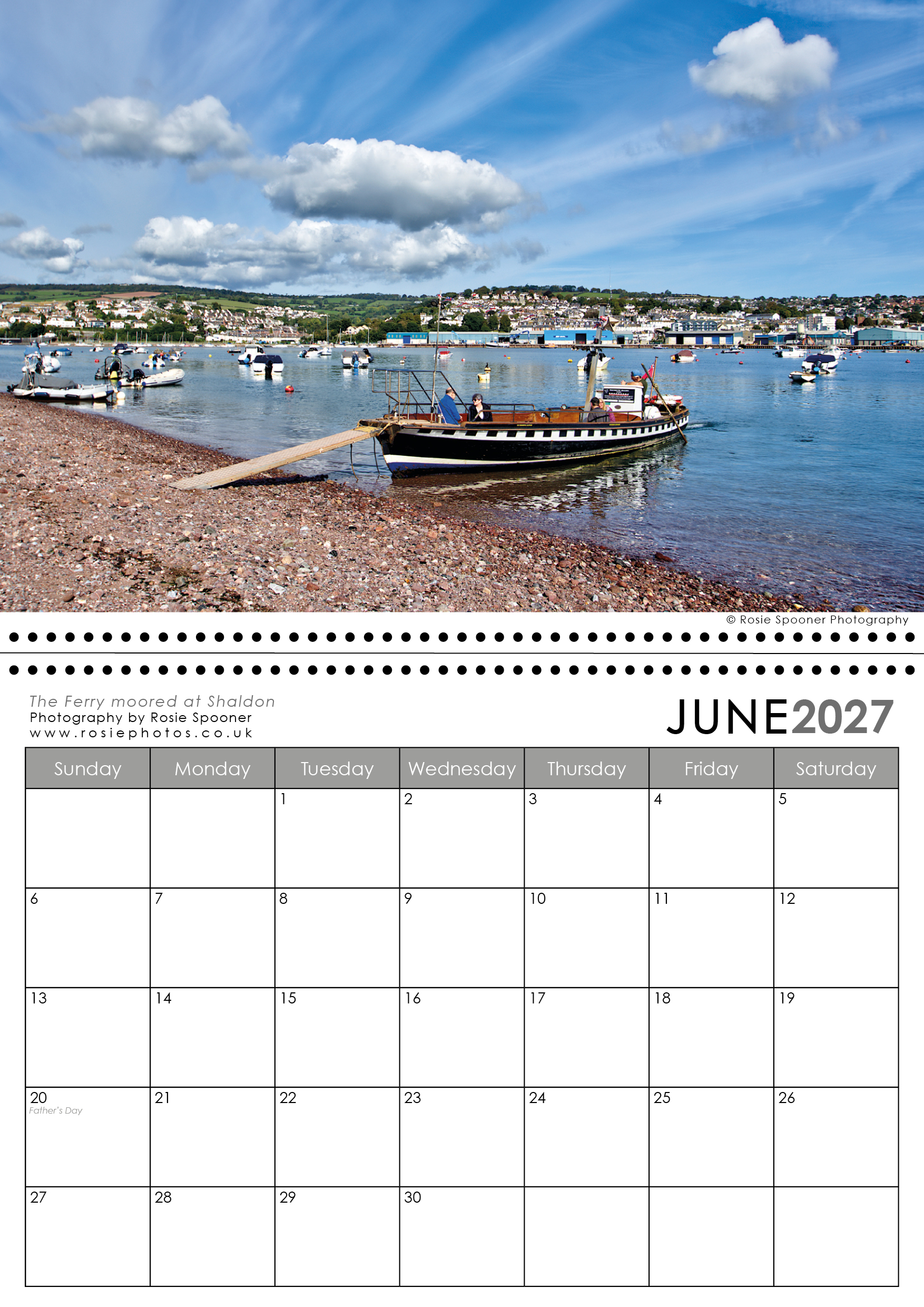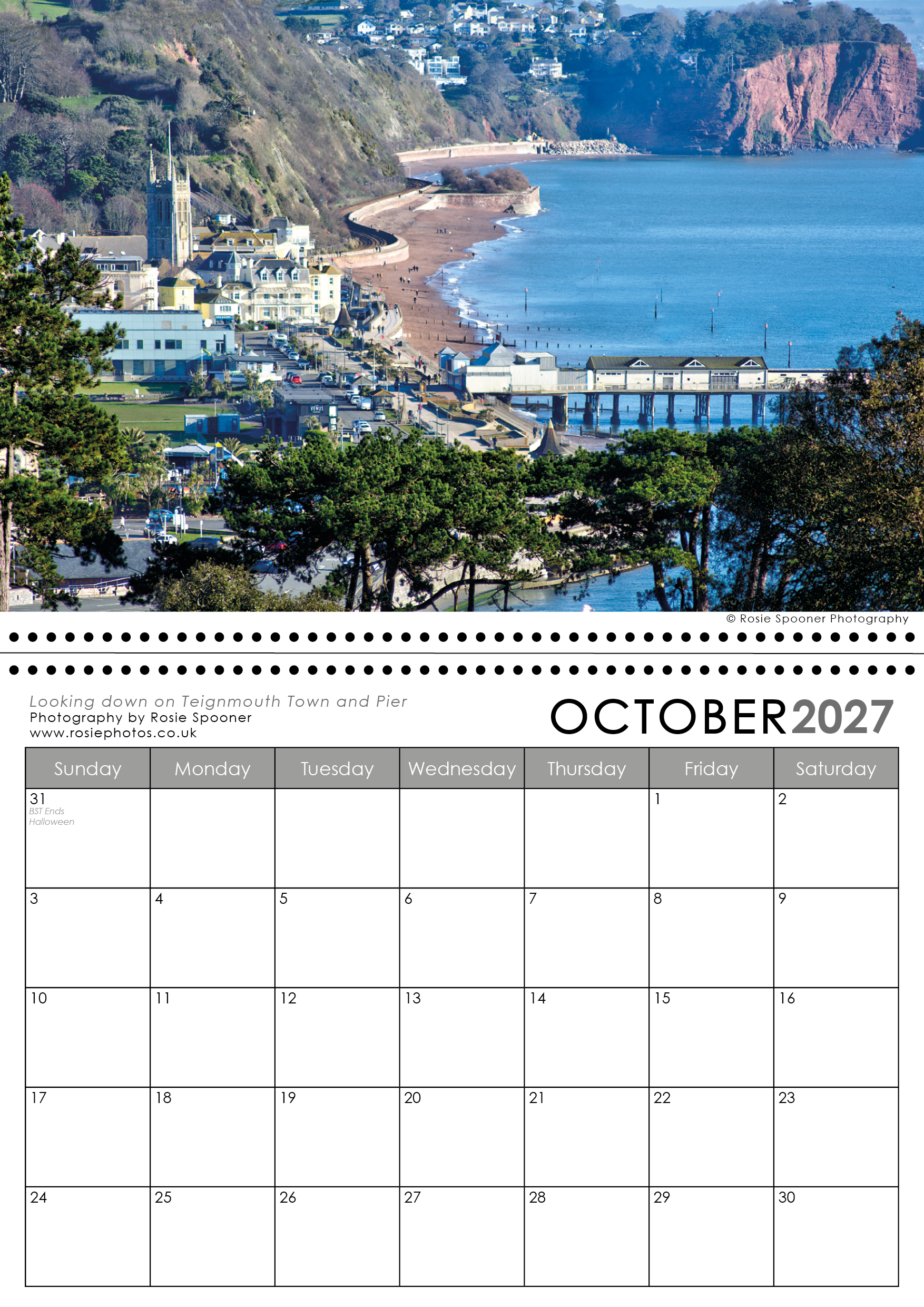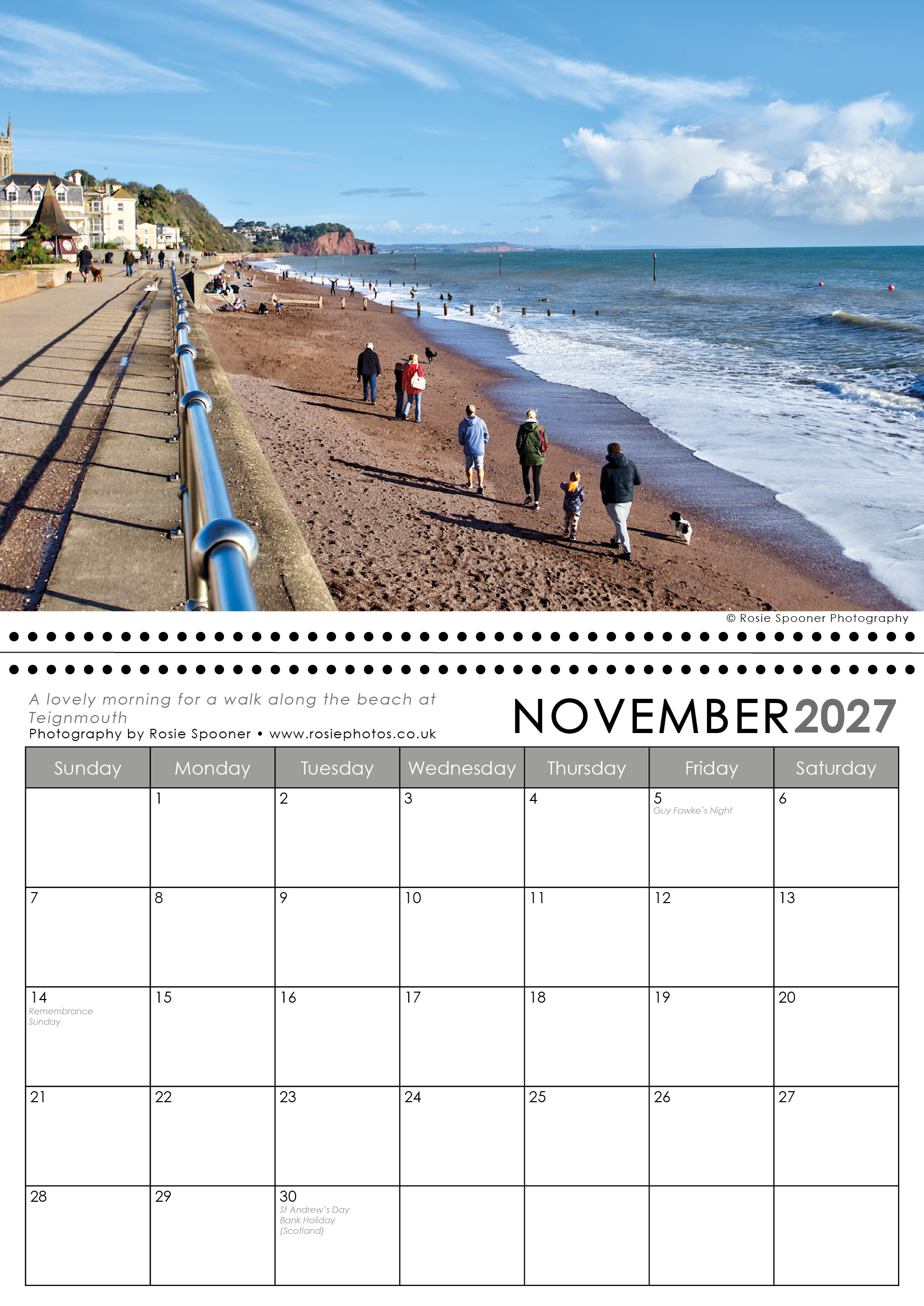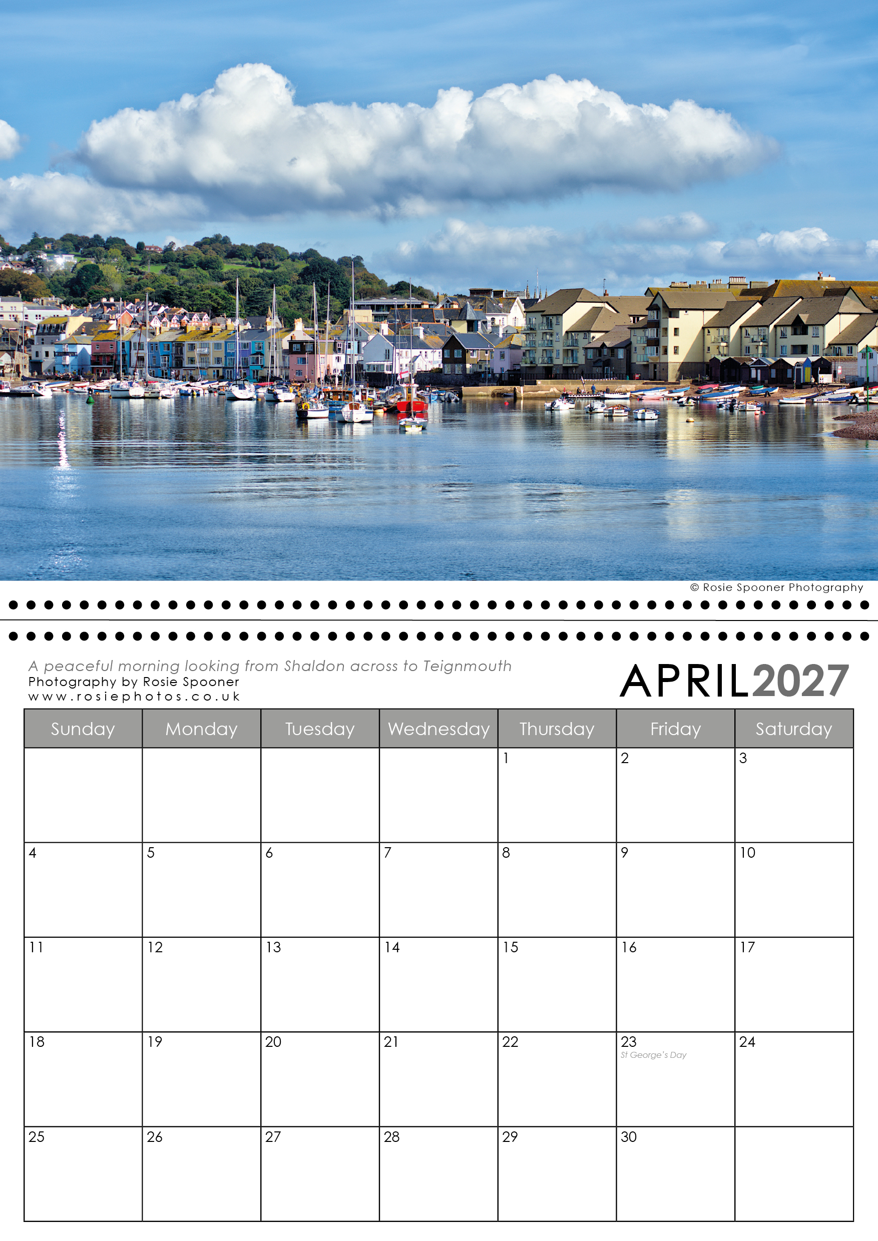 Teignmouth and Shaldon Calendar 2027. This is the version with a Shaldon view on the front. There is also a Teignmouth version with Teignmouth on the front page.The calendars are identical inside