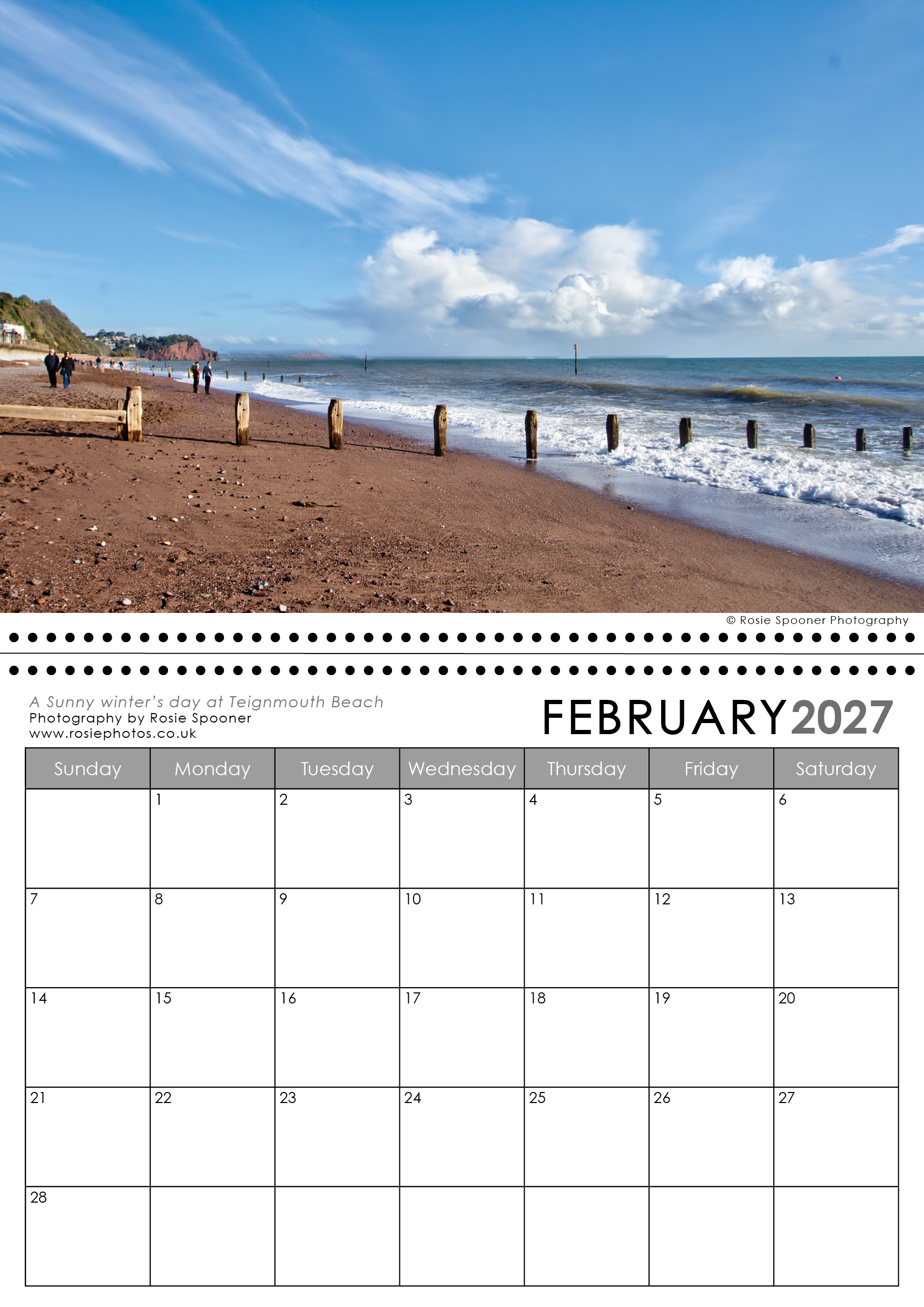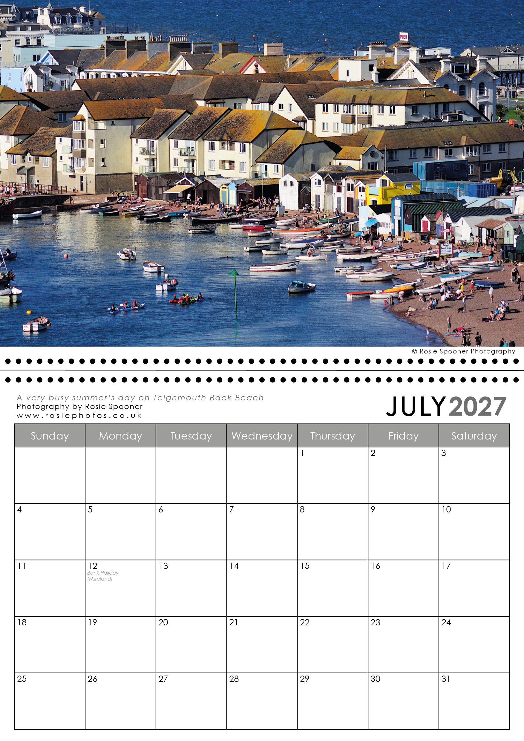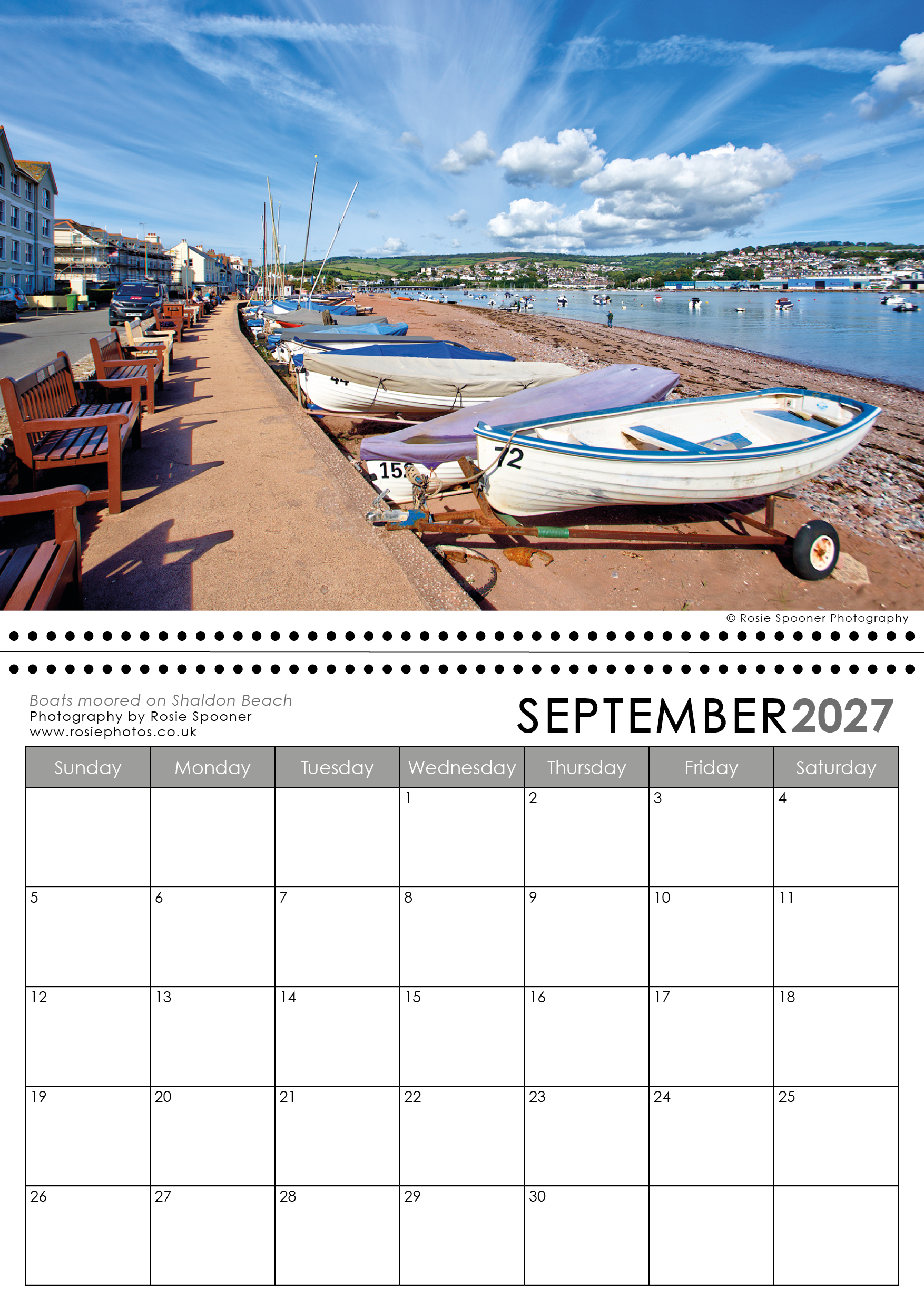 Teignmouth and Shaldon Calendar 2027. This is the version with a Shaldon view on the front. There is also a Teignmouth version with Teignmouth on the front page.The calendars are identical inside