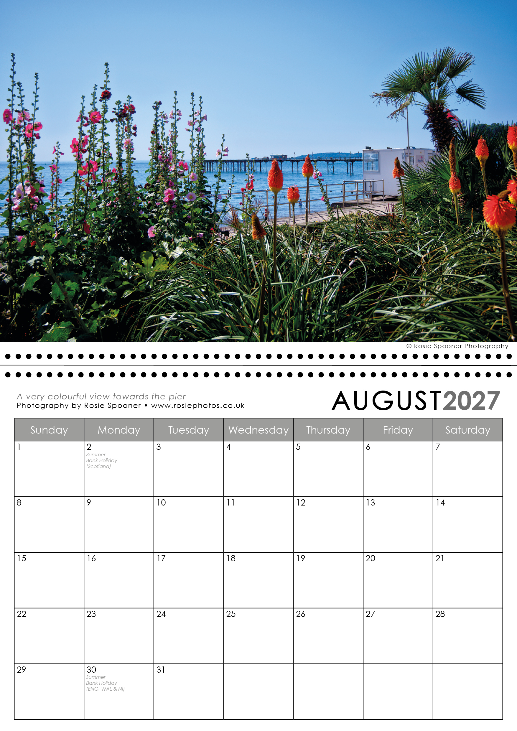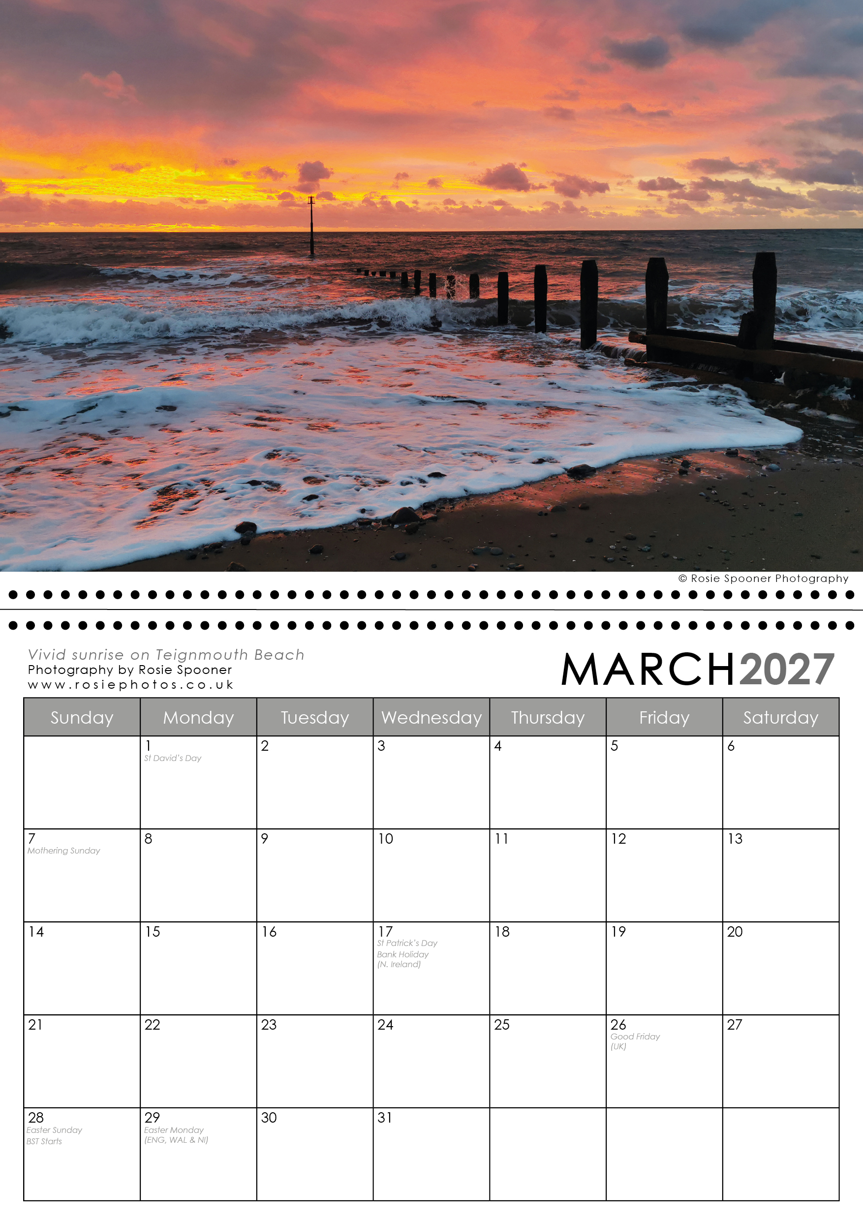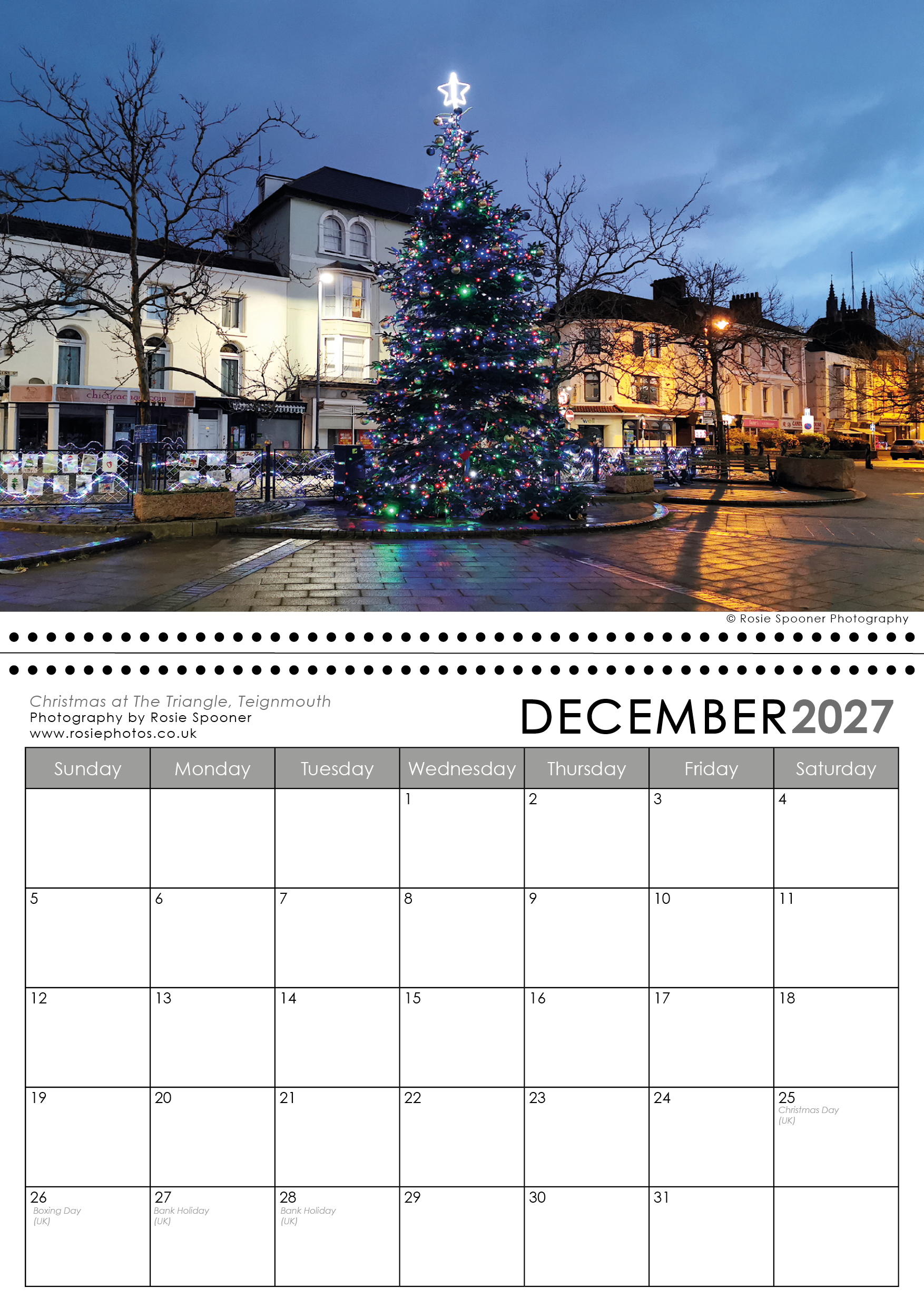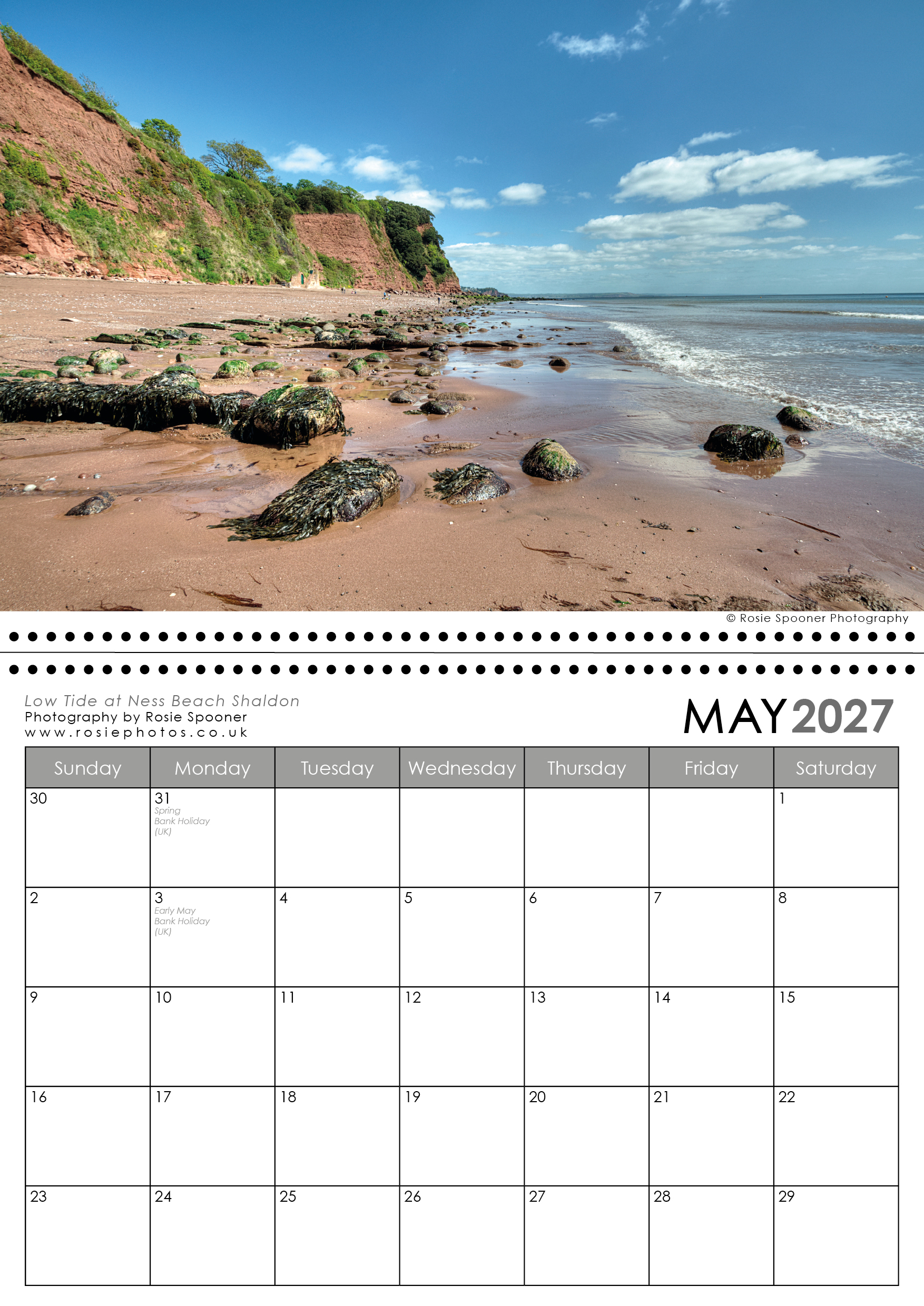 Teignmouth and Shaldon Calendar 2027. This is the version with a Shaldon view on the front. There is also a Teignmouth version with Teignmouth on the front page.The calendars are identical inside
